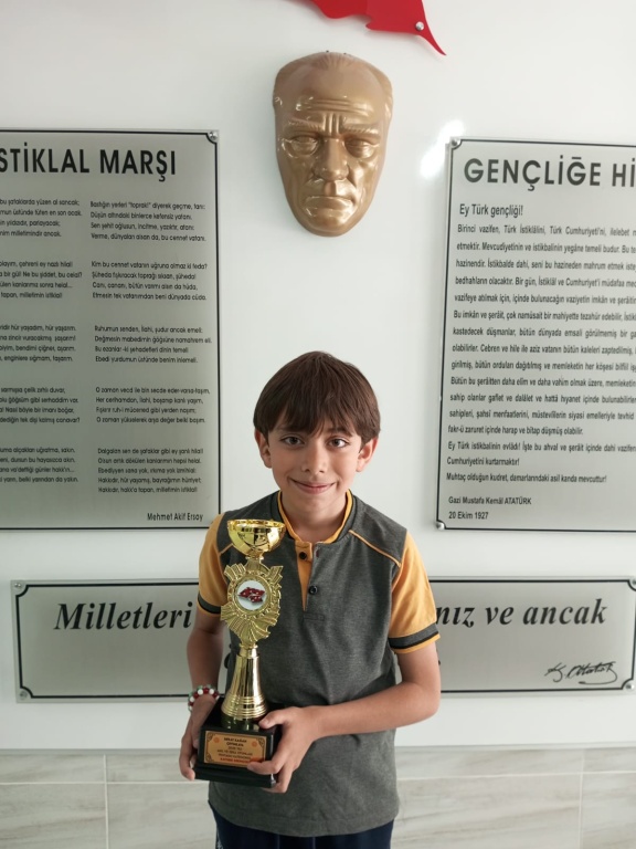 OKULUMUZ ÖĞRENCİLERİNDEN BERAT KAĞAN ÇETİNKAYA AKIL ZEKA OYUNLARI TURNUVASINDA KAYSERİ 1. OLDU. TÜRKİYE GENELİ YARIŞMALARDA KAYSERİMİZİ TEMSİL EDEN ÖĞRENCİMİZE KUPASINI OKUL MÜDÜRÜMÜZ MUSA DURĞUT TAKDİM ETTİ. ÖĞRENCİMİZE BAŞARILAR DİLERİZ.